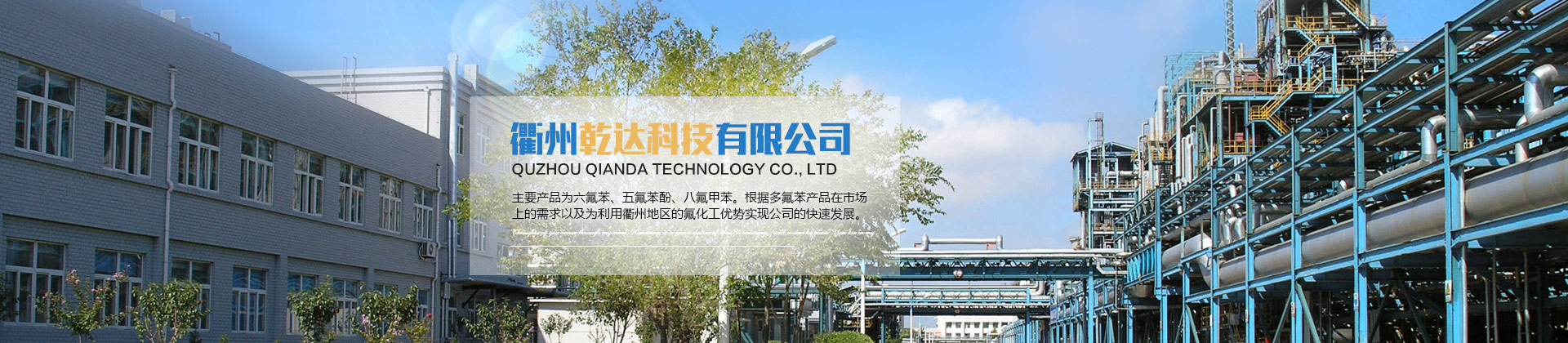 衢州乾達(dá)科技有限公司成立于2013年8月,注冊(cè)地浙江省衢州市柯城區(qū)華楓路16號(hào),位于衢州市高新技術(shù)產(chǎn)業(yè)園。公司運(yùn)用國內(nèi)首創(chuàng)工藝進(jìn)行多氟苯及其衍生物的研發(fā)并實(shí)現(xiàn)了工業(yè)化量產(chǎn)。